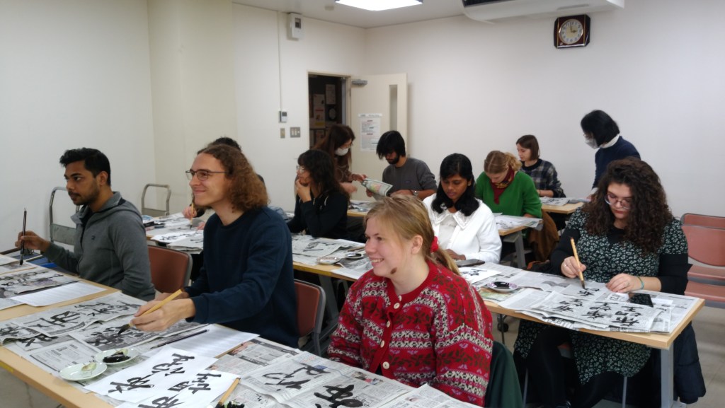 Hello everyone, how’s autumn in Sendai? Though cold breeze is blowing in November, we hope that everyone’s always happy and healthy. Last week, on November 11, Group Mori conducted an event, no, not a pocky day, but a Japanese calligraphy class for beginners. Everyone stroked their brush well and had a very nice time while learning Japanese culture.