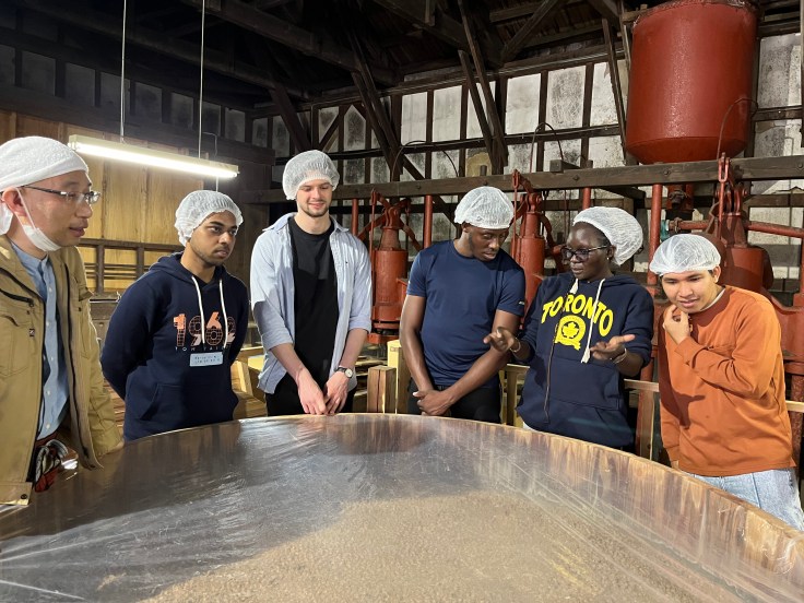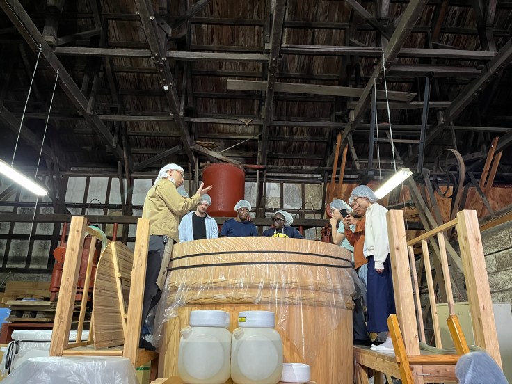 After a few moments, the box opened, and a karakuri doll began to spin, followed by another one, which was a sight I had never seen before. After a gelato at a soy sauce shop near Honshiogama Station, the owner kindly allowed us to observe the fermentation process that produces soy sauce. It was another valuable experience for us.