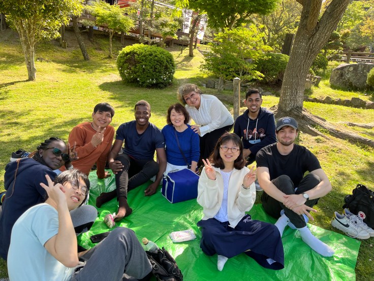 Hello everyone, do you know that Japan has a consecutive holidays in the end of April until early May which is called as “Golden Week”? On May 3rd, Group MORI along with international students went to Shiogama city to have a tea ceremony while enjoying the warm spring scenery. Everyone had a really nice picnic!